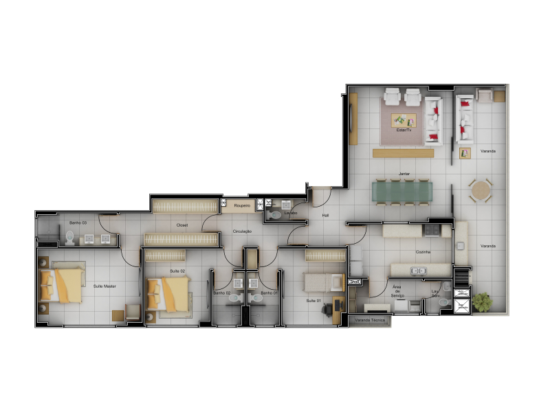 - 26 Apartamentos tipo com área entre 166,36m² a 321,82 m² e 17 pavimentos.